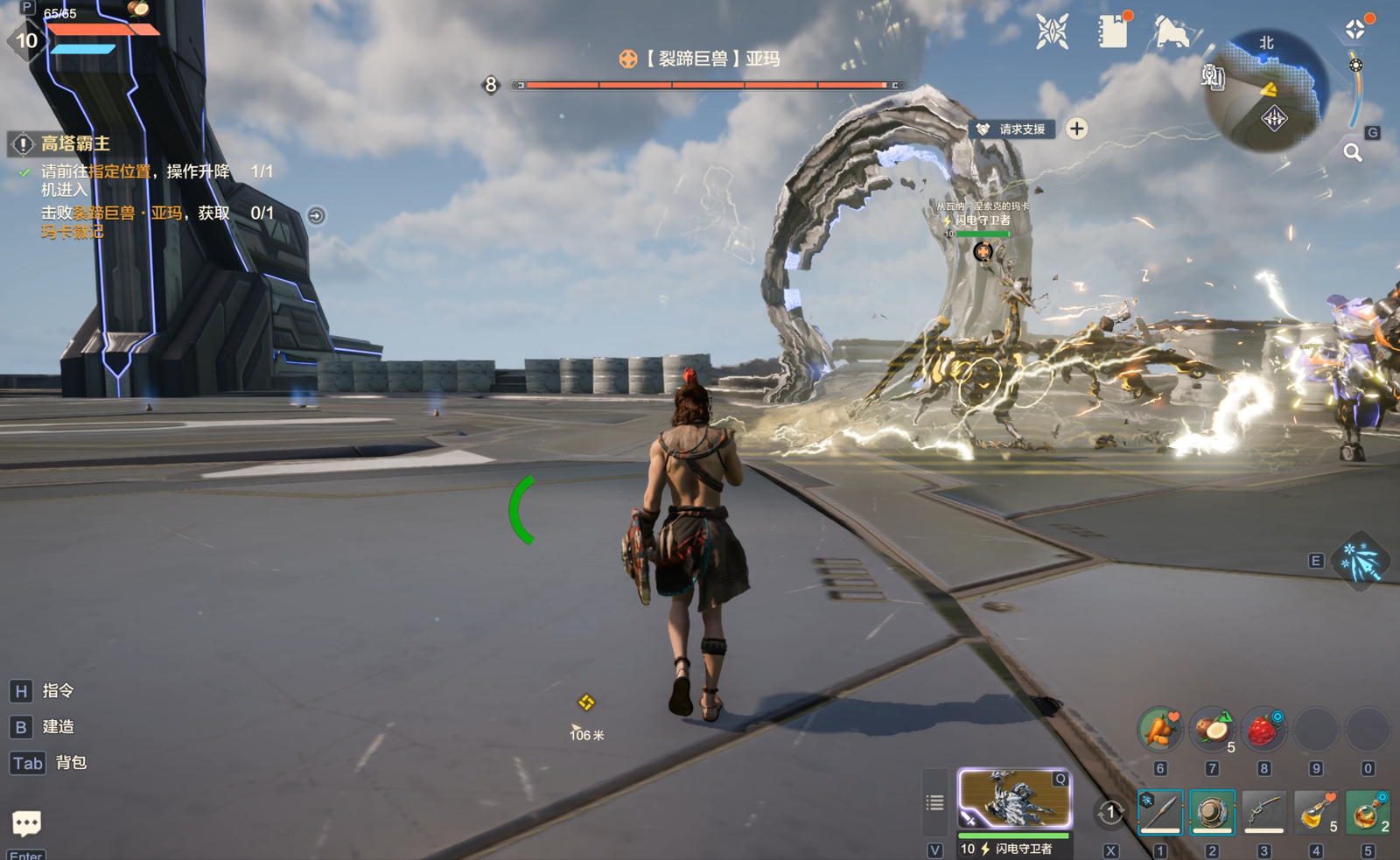 裂蹄巨兽亚玛在裂蹄原野的高塔上,前期可以直接利用坐骑快速到达位置,点机关按钮,然后直接坐升降机上去即可。
