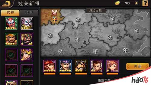 在“过关斩将”过程中玩家可以选择1~5名武将上阵战斗,这里小编建议按照对自己武将操作熟练程度,依次勾选好全部上阵的五名武将,一旦最后上阵的一名武将阵亡,副本将会终止;每次过关分为10个小节,每个小节获胜后,可以领取该小节的奖励;第1~5 小节,每个关卡只有一个BOSS出场,第6小节开始每关出场会2个BOSS,最后一节将有3名BOSS出场。